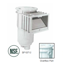 SkimMaster is a large capacity automatic surface skimmer featuring a round, tamper proof access cover, self adjusting 8” weir with a stainless steel spring, dual outlets and threaded internal connections to accommodate pressure testing. NSF available.